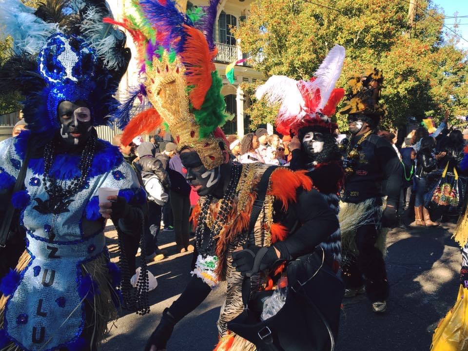 MARDI GRAS/ BLACK MASKING INDIANS: The history of this culture is primarily an oral one told through songs and chants much like the way stories of the past are told by African griots. Although there are numerous origin stories, there is agreement that aspects of the custom of Blacks “masking” (costuming) Indian began in the mid-19th century as a way to honor the Native Americans with whom slaves found refuge when they sought freedom.
